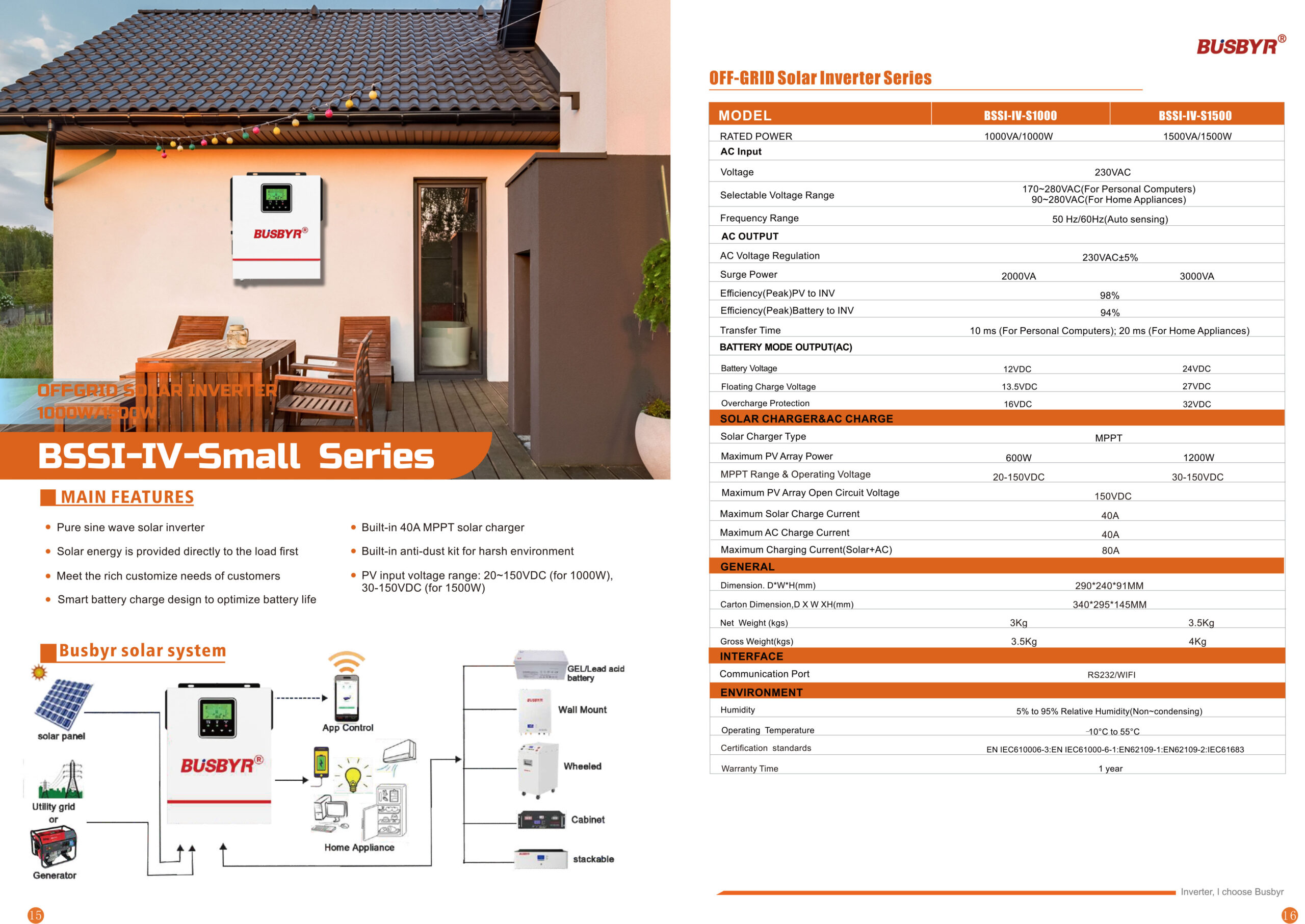 PV input voltage range: 20~150VDC (for 1000W), 30~150VDC (for 1500W)